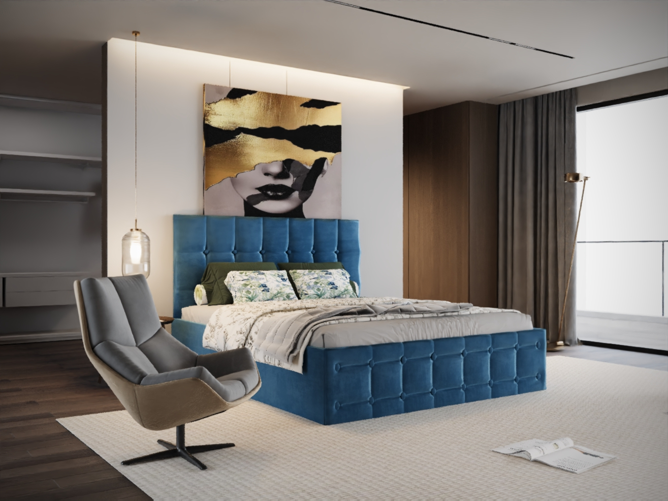 Pat Regal Tapitat Albastru fara Saltea 180x200