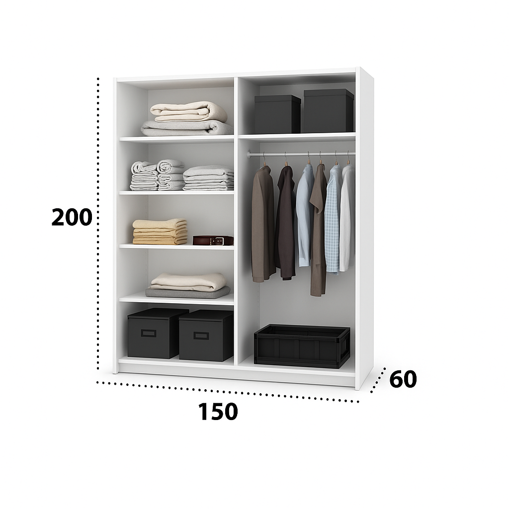Dimensiuni: 150 lățime x 60 adâncime x 200 cm înălțime