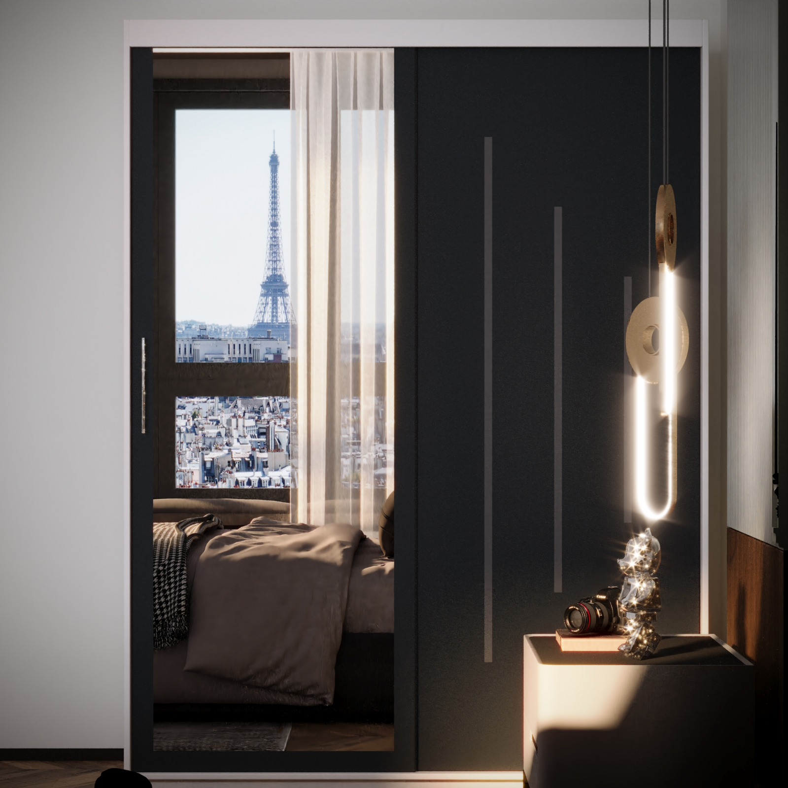 Dulap Kenzo Space cu Oglinda Alb&Antracit