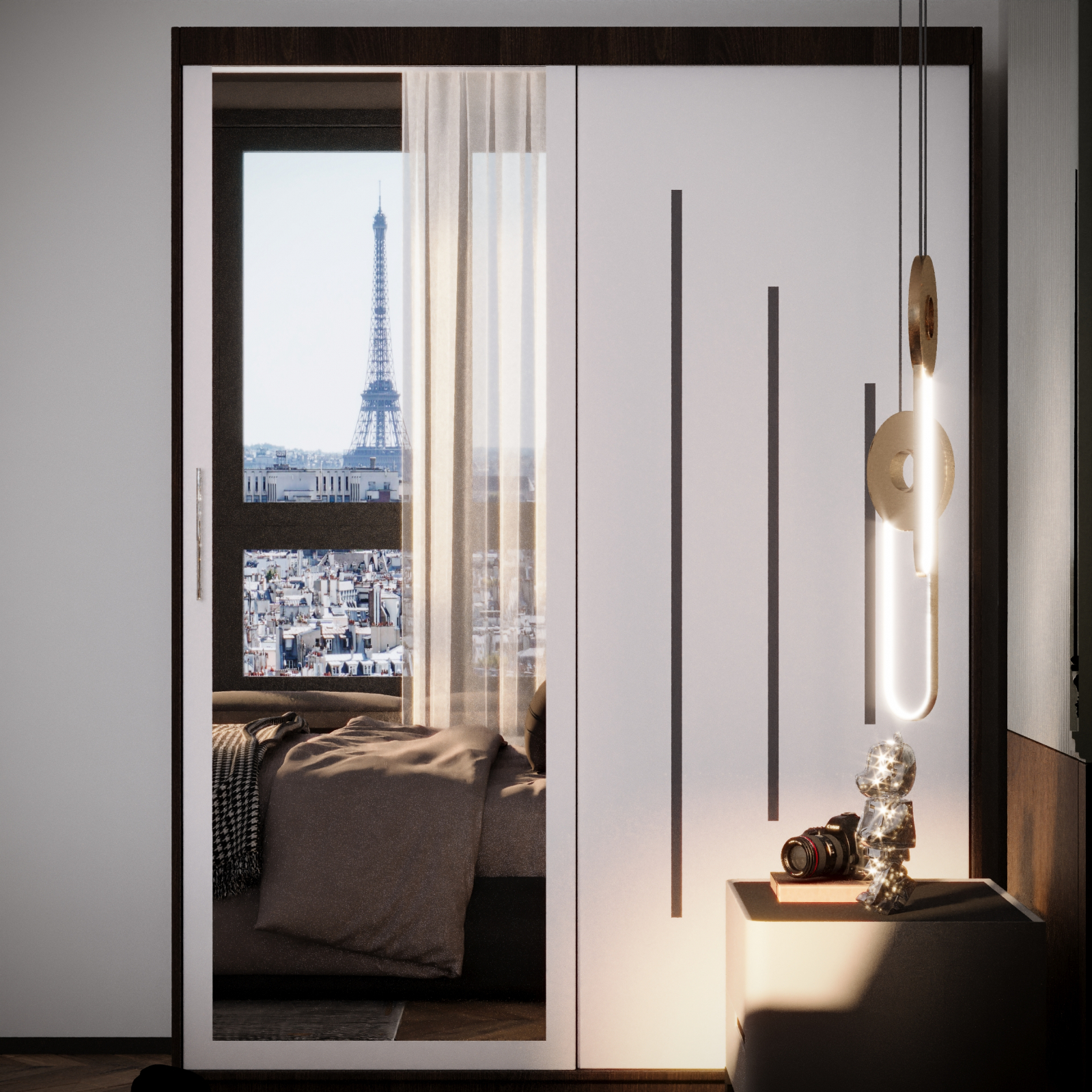 Dulap Kenzo Space cu Oglinda Wenge&Alb