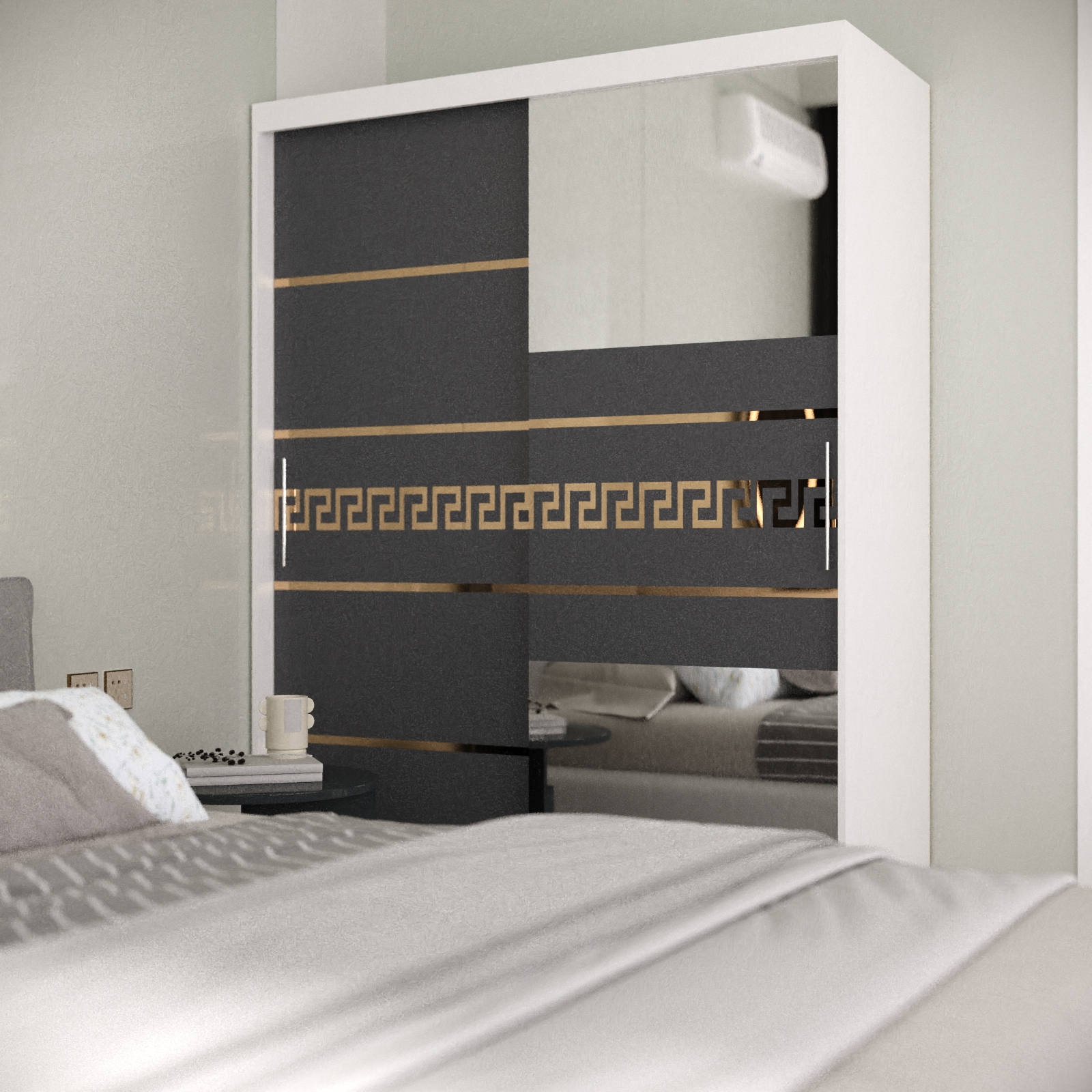 Dulap Kenzo Gold cu Oglinda Alb&Antracit