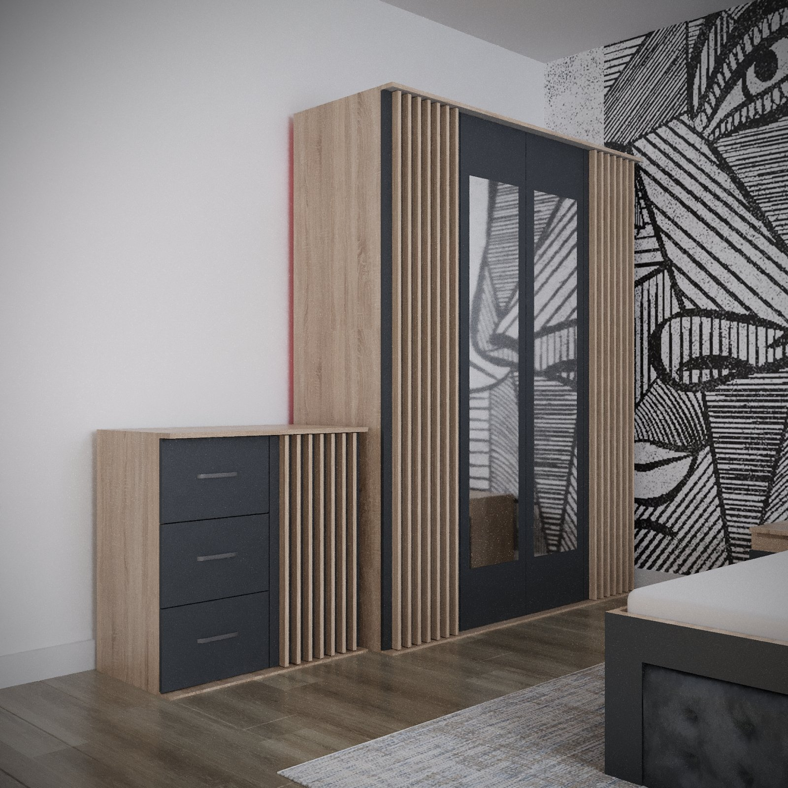 Detalii rafinate și finisaje de înaltă calitate, acest set este perfect pentru cei ce caută să-și upgradeze spațiul de odihnă într-un mod luxos.