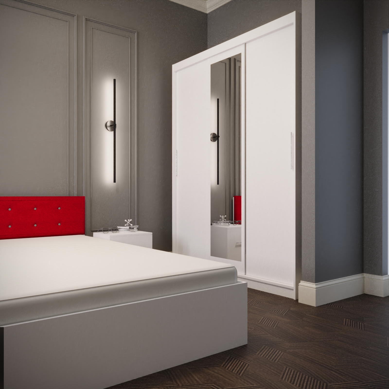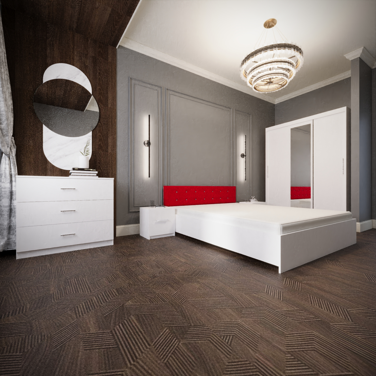 Dormitor Monticelli Tapitat Alb&Rosu 3 usi cu Oglinda