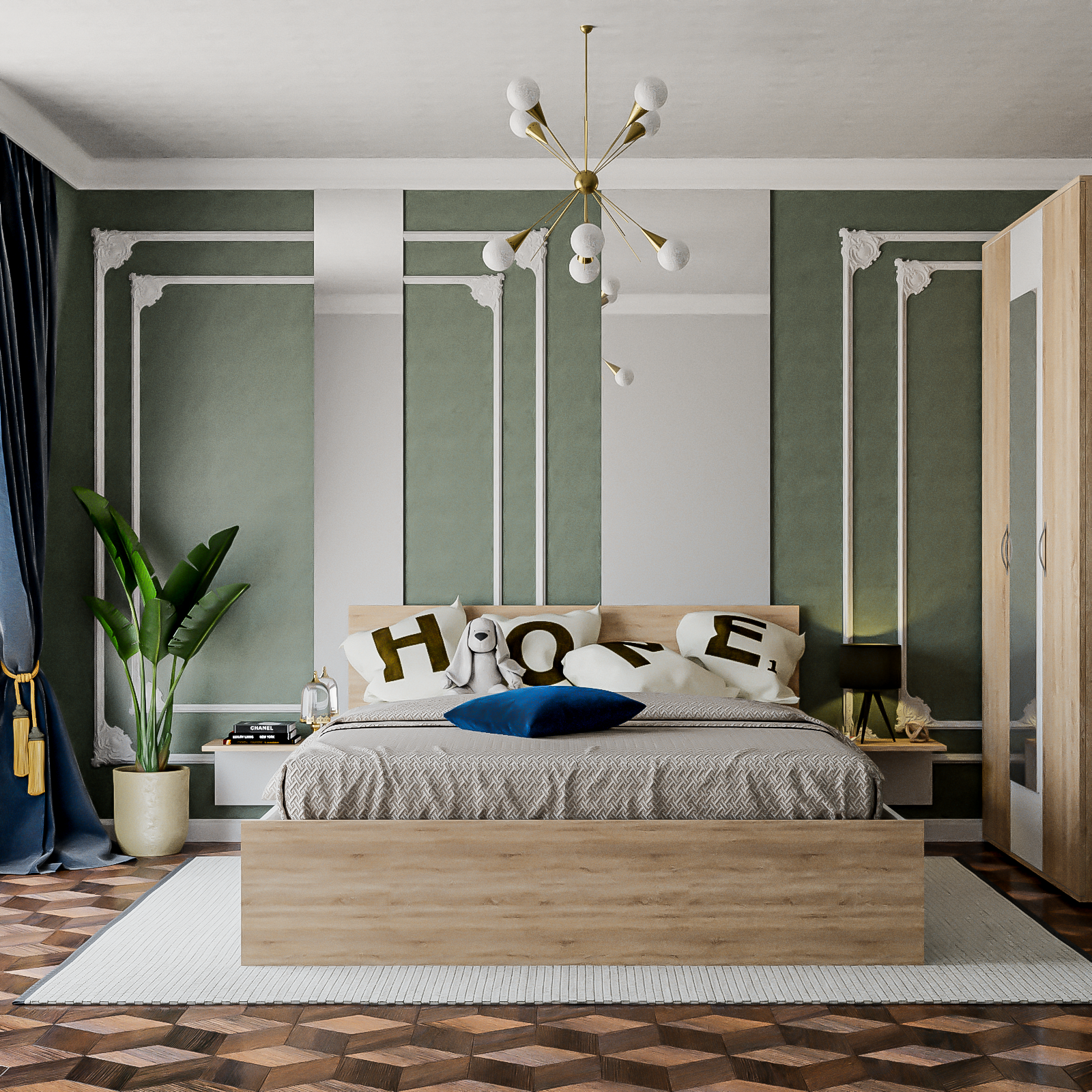 Dormitorul Forest împletește nuanțele inspirate din natură cu finisajul cald și natural, amenajând un spațiu funcțional, cu influențe actuale.