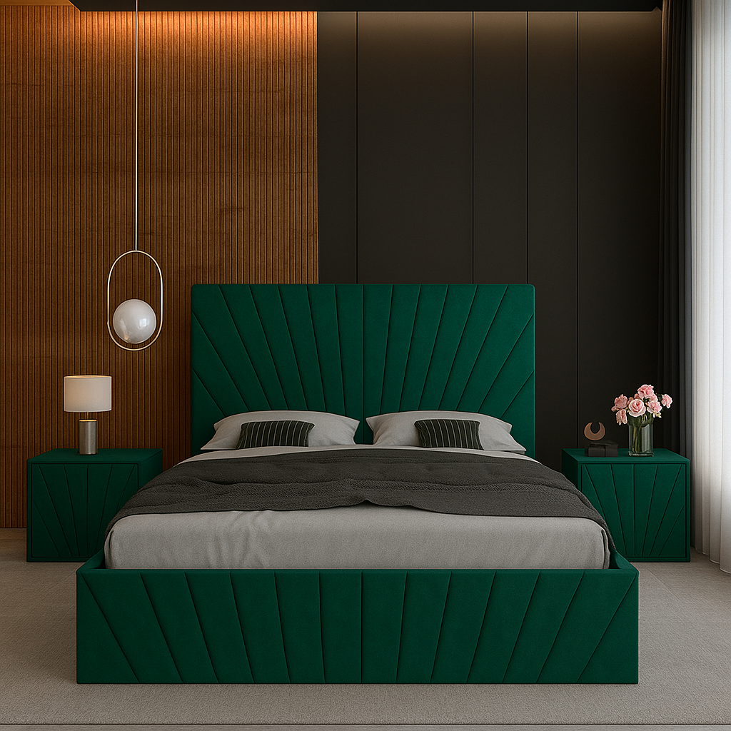 Colecția Solis aduce armonie și stil prin combinația perfectă dintre designul modern și confortul premium. Patul tapițat cu tăblie înaltă și detalii geometrice este completat de noptierele tapițate asortate, practice și elegante, care oferă un plus de unitate vizuală și rafinament. Realizată din catifea fină, în nuanțe sofisticate, Solis transformă dormitorul într-un spațiu cald, modern și plin de personalitate.