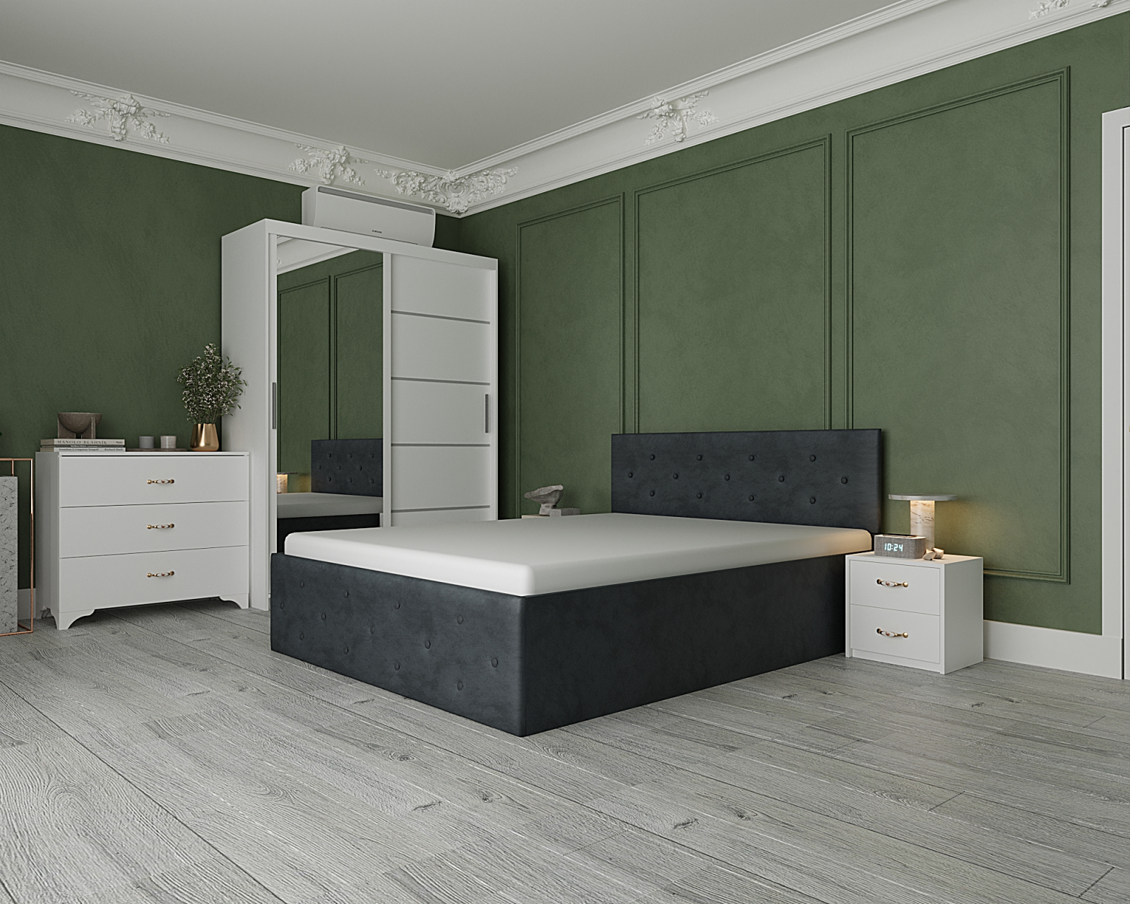 Dormitor Nevada Tapitat cu Oglinda Alb&Gri
