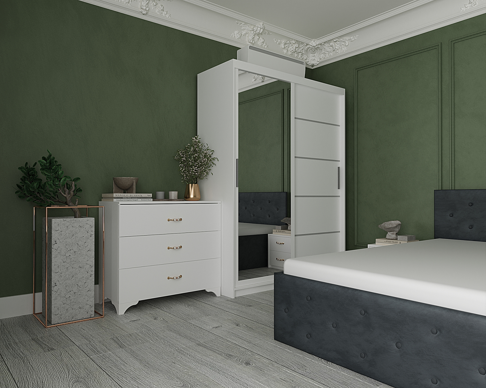Dormitor Nevada Tapitat Alb&Gri 2 usi cu Oglinda