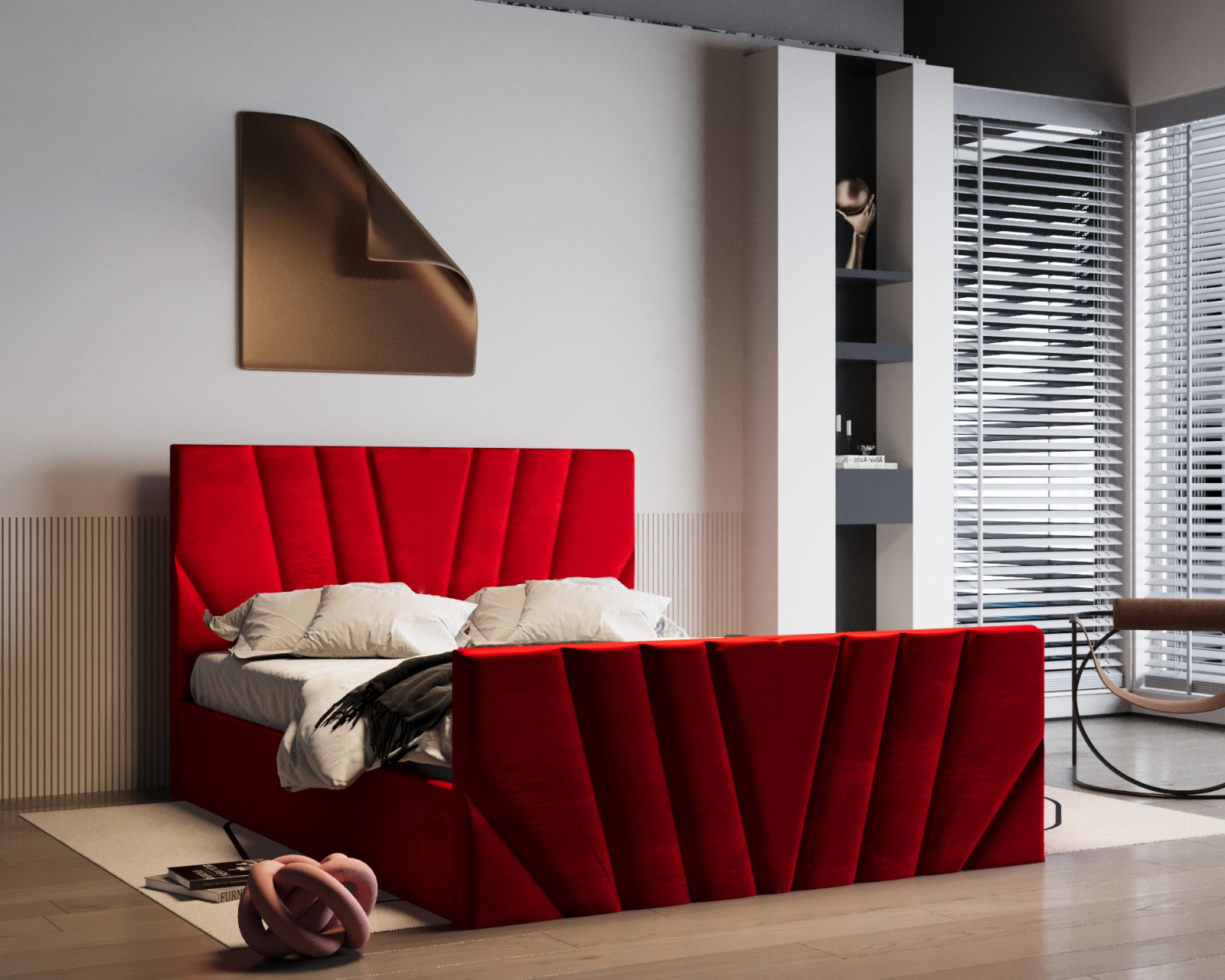 Patul Tony impresionează prin designul său modern și tapițeria luxoasă. Liniile geometrice și textura catifelată adaugă rafinament oricărui dormitor, oferind în același timp un confort excelent pentru odihnă.